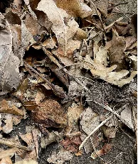 Mais c’est loin d’être tout. La litière est un réseau trophique complexe et un véritable microcosme de biodiversité dans la mesure où son contenu organique est fragmenté, décomposé et consommé par une diversité étonnante d’organismes (1-4). Les champignons et bactéries (« pourriture blanche ») s’attaquent aux feuilles mortes, agissant en synergie avec les détritivores comme les collemboles, staphylins, perce-oreilles, acariens, vers de terre et gastropodes. Leur broutage de débris végétaux rend la tâche des microorganismes plus rapide et plus facile. Par le biais de leurs actions collectives, et au bénéfice du sol, la litière est progressivement transformée en humus en parallèle avec la libération du carbone et des minéraux essentiels comme l’Azote, Calcium, Phosphore et Soufre. Les feuilles mortes représentent, donc, un compost naturel (et gratuit !) et un garant de la régénération et de l’auto-fertilisation du sol.
