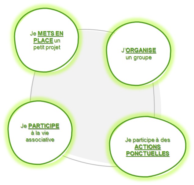 - Mettre en place des projets : vous voulez mettre en place un projet qui vous tient à cœur ou vous aidez l’association à construire un projet en menant des actions,